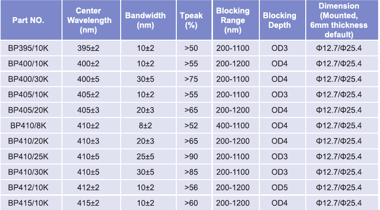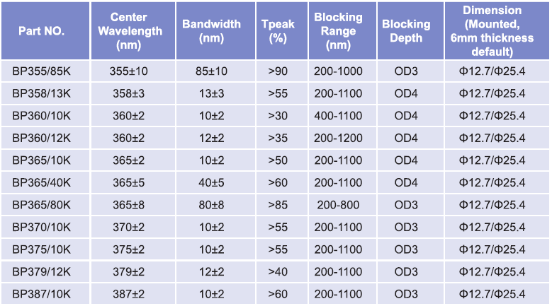 、庫存:上萬種標(biāo)準(zhǔn)及非標(biāo)準(zhǔn)帶通濾光片產(chǎn)品現(xiàn)貨供應(yīng)