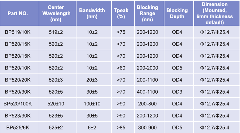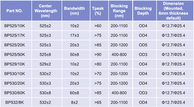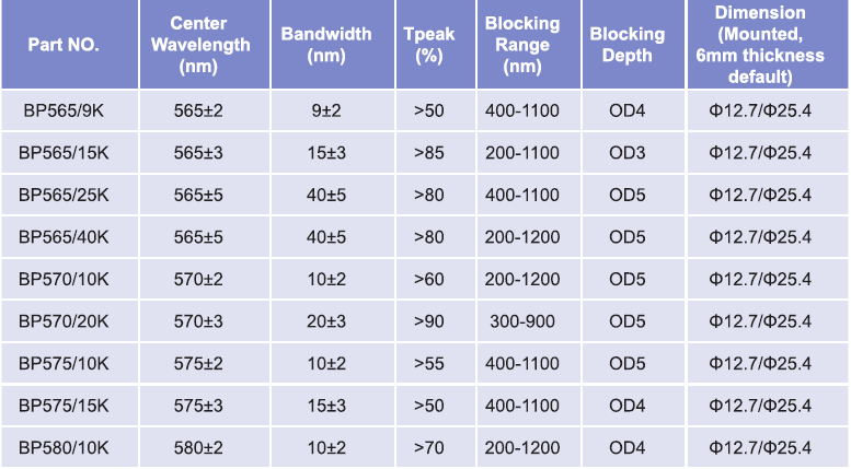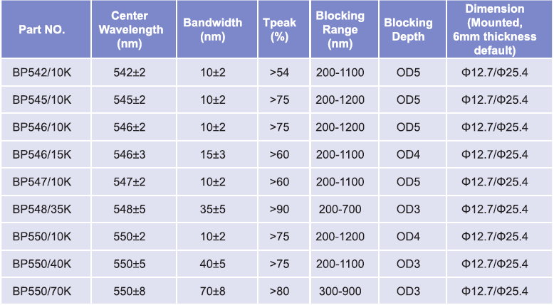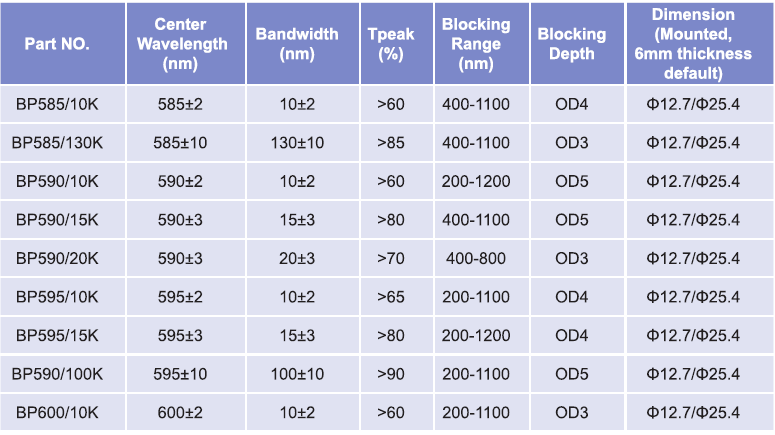、庫存:上萬種標準及非標準帶通濾光片產(chǎn)品現(xiàn)貨供應