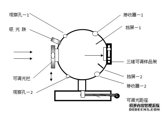 1. 入光孔的孔徑是可變的,借可調光攔來改變入射的光通量,從而改變球內表面的照度;