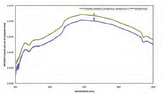 NBET-2000N氘-鎢鹵組合式光源在一個(gè)光路中集成了氘燈光源和鎢鹵光源的連續(xù)輸出光譜,產(chǎn)生215-2000nm的穩(wěn)定的光譜輸出。另外紫外增強(qiáng)型光源的輸出光譜的范圍為190-1700nm。