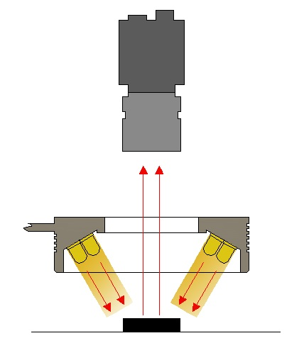 環(huán)形光源由高亮LED陣列特殊設(shè)計(jì)而成,光源角度以中心垂直線為基準(zhǔn),提供多種不同照射角度選擇,適應(yīng)于檢測(cè)物體的邊緣清晰特征,突出感興趣的被測(cè)物體信息,解決對(duì)角照射陰影問(wèn)題。
