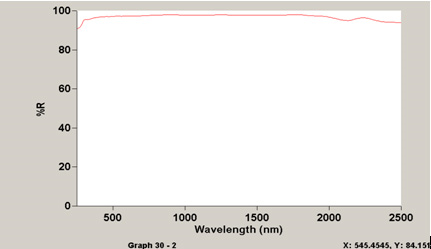 3. 白板的反射率數(shù)據(jù),由中國(guó)計(jì)量院測(cè)試,并以此為標(biāo)準(zhǔn)值傳遞;使用波長(zhǎng)250-2500nm;