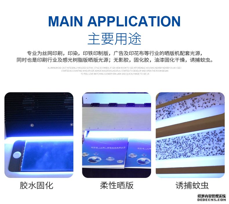 用途:無(wú)影膠,UV膠水,油墨的固化,冷光源曬版,光化作用,昆蟲誘等。