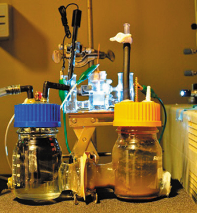 該團(tuán)隊(duì)將太陽能電池與微生物燃料電池巧妙地整合在一起,利用太陽能和廢水中的有機(jī)養(yǎng)分生產(chǎn)清潔能源—氫氣。這一新型裝置首先將太陽能轉(zhuǎn)化為電能,然后將電子傳遞給廢水中的微生物使其有足夠的能量分解廢水中的有機(jī)物。其中的一些細(xì)菌在消耗有機(jī)物的同時(shí)產(chǎn)生電子,這些電子通過導(dǎo)線被傳回太陽能用以分解水—生成氫氣和氧氣。實(shí)驗(yàn)證明,廢水中2/3的有機(jī)廢物在兩天之內(nèi)就會被分解掉。盡管凈化之后的廢水還不能直接飲用,但是如果將這一成果應(yīng)用于廢水處理廠將使得生活廢水處理過程大幅簡化,更重要的是與此同時(shí)大量生產(chǎn)氫氣這一清潔能源。