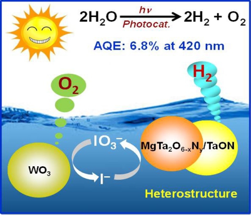 近日,中國(guó)科學(xué)院大連化學(xué)物理研究所催化基礎(chǔ)國(guó)家重點(diǎn)實(shí)驗(yàn)室及潔凈能源國(guó)家實(shí)驗(yàn)室太陽(yáng)能研究部研究員、中科院院士李燦和研究員章福祥、陳閃山等與日本東京大學(xué)教授Kazunari Domen課題組合作,在可見光驅(qū)動(dòng)光催化Z機(jī)制完全分解水制氫研究中取得進(jìn)展。研究結(jié)果發(fā)現(xiàn),經(jīng)一步氮化合成的MgTa2O6−xNy/TaON異質(zhì)結(jié)材料(長(zhǎng)可吸收波長(zhǎng)達(dá)570 nm)可有效促進(jìn)光生電荷分離,基于此異質(zhì)結(jié)材料構(gòu)筑的寬光譜響應(yīng)Z機(jī)制完全分解水制氫體系,其表觀量子效率達(dá)到目前文獻(xiàn)報(bào)道高值(AQE: 6.8%@420 nm)。相關(guān)結(jié)果在線發(fā)表在《德國(guó)應(yīng)用化學(xué)》期刊上。